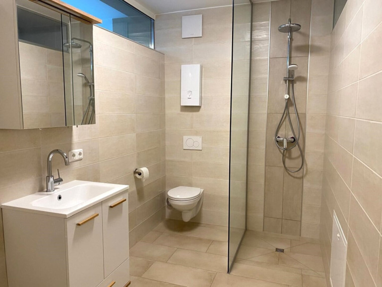 Die kleine aber feine Küche ist modern und voll ausgestattet. Das Badezimmer verfügt über ein Fenster und eine Dusche, was für viel Tageslicht und Frischluft sorgt – ein echtes Plus an Wohnqualität.