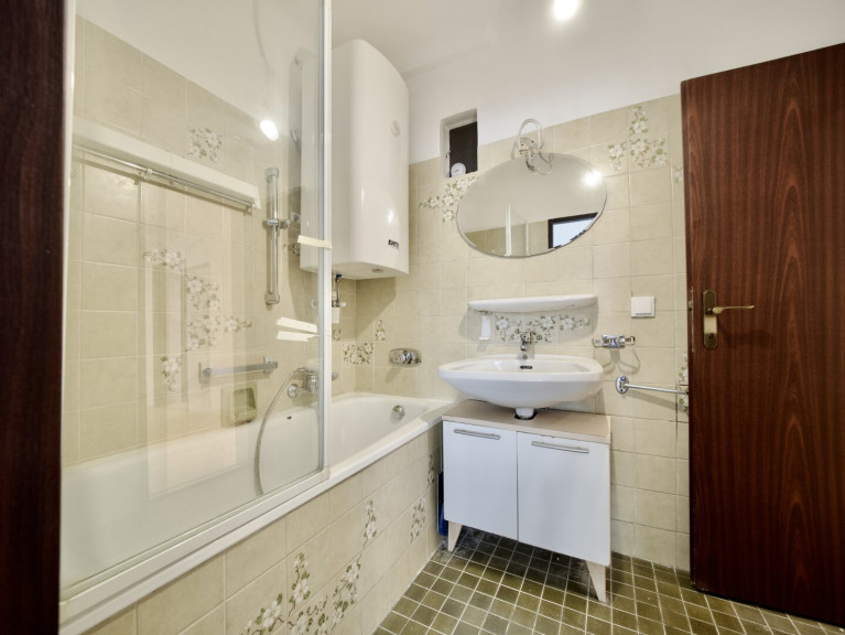 - Badezimmer mit Badewanne, Waschbecken