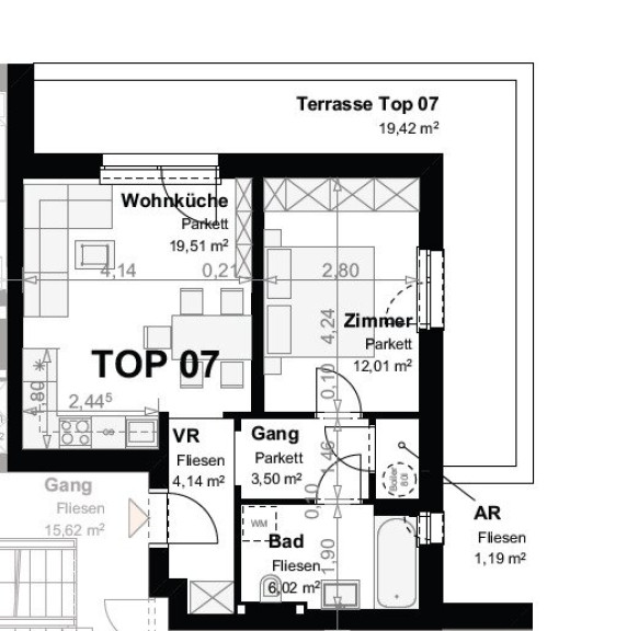 monatliche Vorschreibung: € 584,33 inkl. Küche und Stellplatz