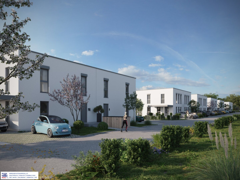 in asten – raffelstetten entstehen moderne doppelhaushälften in ziegelmassivbauweise mit rund 113 m² wohnfläche, eigenem garten und durchdachter raumaufteilung.