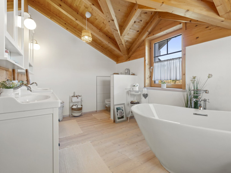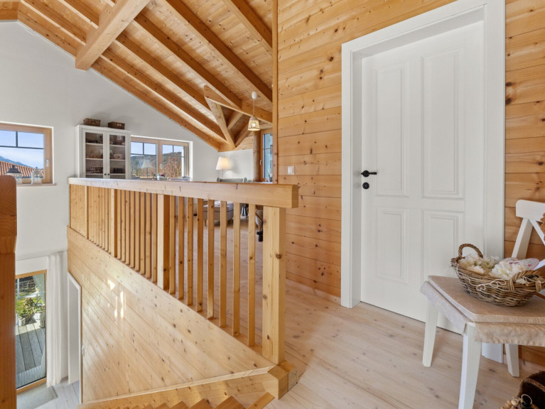 Dieses charmante Schwedenhaus überzeugt sofort mit seinem warmen Holz-Charakter und einem besonderen Wohlfühl-Stil, der Gemütlichkeit und modernes Wohnen perfekt verbindet. Das Haus wurde 2018 errichtet, präsentiert sich neuwertig und bietet auf rund ca. 146 m² Wohnfläche ein durchdachtes Raumkonzept mit viel Licht und offenen Blickachsen. Das Herzstück ist der großzügige, offene Wohn- und Essbereich. Die offene Bauweise mit der schönen Galerie verleiht dem Haus einen ganz besonderen Charakter, der stilvoll und zugleich äußerst gemütlich wirkt. Besonders angenehm ist außerdem die Ausrichtung des Hauses, denn sie macht die Immobilie zu einem echten Sonnenmagneten, wodurch Sie viele Sonnenstunden genießen – egal ob im Winter oder Sommer. Ein weiteres echtes Highlight ist das Badezimmer mit der freistehenden Badewanne, die zum Entspannen und Abschalten einlädt.