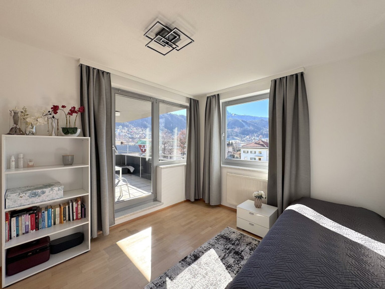 Vom Wohnbereich sowie von einem Schlafzimmer gelangt man auf den ca. 11,26 m² großen Balkon, der mit seiner Südwestlage und dem wunderschönen Blick auf die umliegende Bergwelt ein echtes Highlight darstellt. Ein Kellerabteil mit ca. 6,60 m² rundet dieses attraktive Angebot ab.