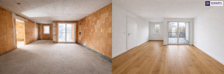 Diese Wohnung beeindruckt mit einem großzügigen Raumangebot. Viel Platz für gemütliche Abende mit Familie und Freunden finden Sie in dem ca. 38 Quadratmeter großen Wohn/Essbereich in Richtung gründen Innenhof und der optimal integrierten Küche, die die Herzen von Hobbyköchen mit Sicherheit höher schlagen lässt. Drei wunderbar geschnittene Zimmer, die sich ideal als Schlafzimmer, Kinderzimmer oder Arbeitszimmer nutzen lassen, ein modern gestaltetes Badezimmer, eine Gästetoilette und ein praktischer Abstellraum ergänzen das Raumangebot dieser neu gestalteten Wohnung. Vom zentralen Wohn-Essbereich aus, gelangen Sie auf die herrliche, ca. 5,6 Quadratmeter große und ruhigen Loggia im Innenhof. Eine zweite kompakte Loggia des Masterbedrooms vervollständigt diese Wohlfühloase!
