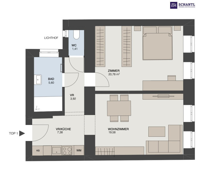 TOP 1 - Stilvolle 2-Zimmer-Wohnung (Büro) mit optimaler Raumaufteilung.