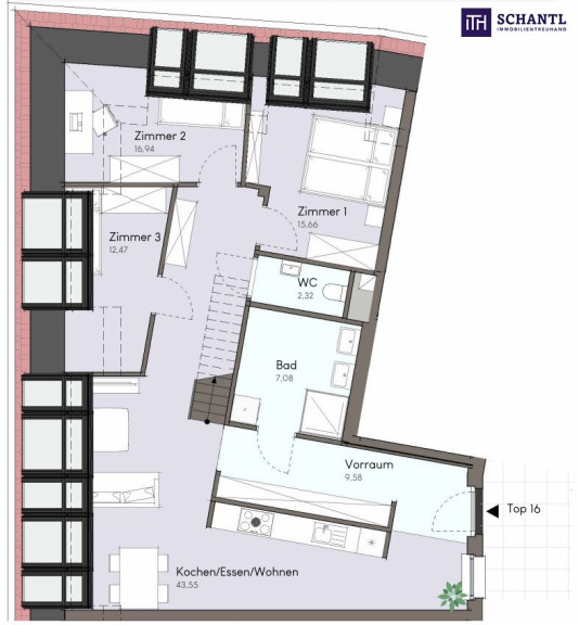 - lichtdurchfluteter Wohnbereich mit idealen Möblierungsmöglichkeiten