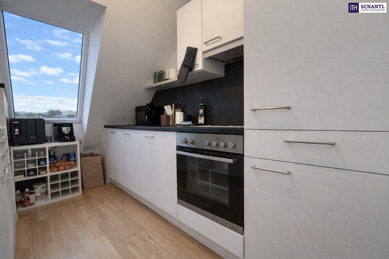 helle Wohnküche inkl. Einbauküche mit direktem Ausgang zum Balkon