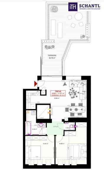 Wohnfläche 77,67 m² + 35,79 m² Terrasse