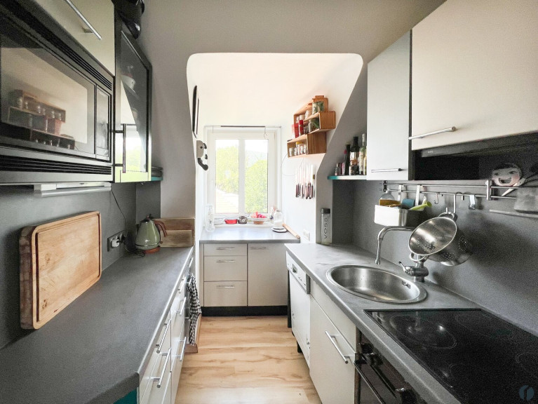 Diese Wohnung kombiniert den Charme eines Dachgeschosses mit einem unvergleichlichen Ausblick und vielfältigen Gestaltungsmöglichkeiten. Der parkähnliche Garten und die gut erhaltene Wohnanlage machen dieses Schmuckstück perfekt für alle, die Ruhe, Komfort und Potenzial suchen. Lift ist keiner eingebaut, daran gewöhnt man sich rasch.