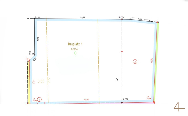 Bauplatz 1 ca. 782 m² Grundstück | ca. 385 m² Wohnnutzfläche möglich | Eigengärten bis ca. 357,9 m² gesamt