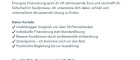 Zusammenfassung der wichtigsten Eckdaten: