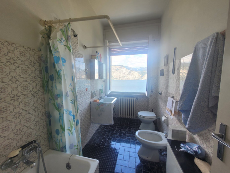 -) Eine große Wohnung im ersten Stock mit einem Wohnzimmer, einer Wohnküche, drei Schlafzimmern und einem Badezimmer. Die Wohnung im ersten Stock verfügt außerdem über eine schöne Terrasse mit Blick auf den Gardasee, perfekt für romantische Mittag- oder Abendessen.