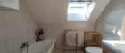 Im oberen Stock befinden sich zwei weitere ruhige Zimmer und ein stilvolles Badezimmer mit Badewanne, diesesund die Toilette wurden 2021 modernisiert.