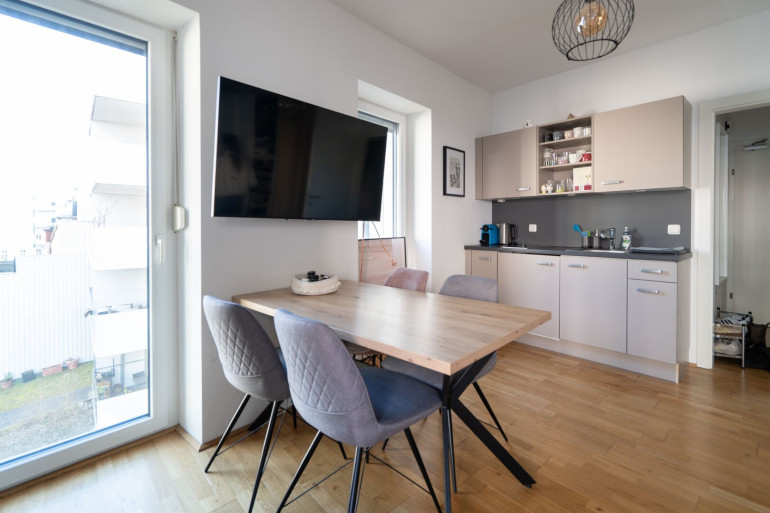 Diese attraktive 1-Zimmer-Wohnung überzeugt durch ihre moderne Ausstattung sowie ihre hervorragende Lage. Mit einer Wohnfläche von ca. 26 m² + 8,14m² Loggia u 1,64m² Balkon bietet sie den idealen Wohnraum für Singles oder Pendler. Die Wohnung verfügt über eine praktische Küche, die zum Kochen und Verweilen einlädt. Der Wohn- und Schlafbereich präsentiert sich modern und gemütlich gestaltet und bietet ausreichend Platz für individuelle Einrichtungsmöglichkeiten. Das stilvolle Badezimmer ist mit einer Dusche und einem WC ausgestattet. Ein besonderes Highlight ist der Balkon bzw. die Loggia, die zusätzlichen Freiraum im Alltag bietet und zum Entspannen einlädt. Zusätzlichen Stauraum bietet ein eigenes Kellerabteil. Für Fahrräder steht ein gemeinschaftlicher Fahrradraum zur Verfügung. Im Erdgeschoss befindet sich außerdem ein Kinderspielplatz, der allen Bewohnern zur Nutzung offensteht. Geheizt wird mittels Fernwärme. Ein Personenaufzug ist vorhanden.
