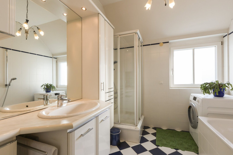 Bad mit Wanne, Dusche, Fenster und Waschmaschinenanschluss,