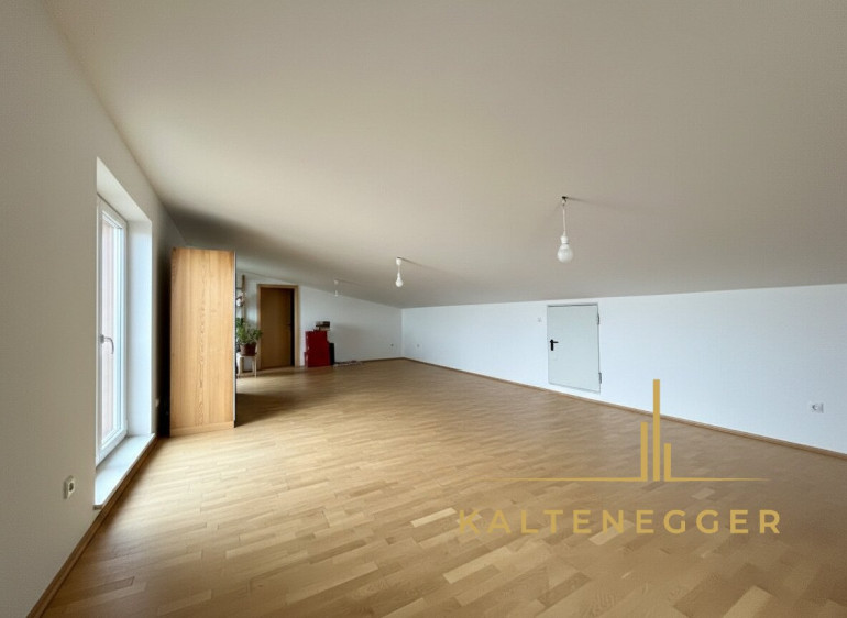 Das Dachgeschoss umfasst ca. 60 m², inklusive Technikraum. Der Zugang erfolgte bisher über das Nebengebäude. Die Galerie wurde so vorbereitet, dass der Einbau einer Treppe möglich ist – Pläne dazu sind bereits in Vorbereitung.