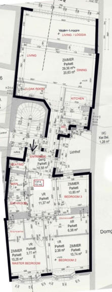 Die Domgasse befindet sich in unmittelbarer Nähe zum Stephansdom/Stephansplatz - im absoluten Zentrum von Wien. Das Mozarthaus (wo Mozart von 1784 bis 1787 arbeitete, heute ein Museum) ist 100 m entfernt. Das Haus wurde 2005 komplett renoviert und dabei an der zum Innenhof gerichteten Südseite eine Wohnzimmer-Erweiterung mit großzügigen Verglausungen realisiert, welche zum großen, hellen, absolut ruhigen und grünen Innenhof ausgerichtet ist.