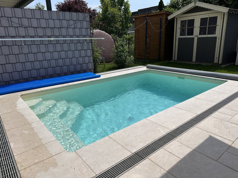 Pool: geheizt mit Sicherheitsabdeckung. Vorbereitung für Gegenstromanlage.