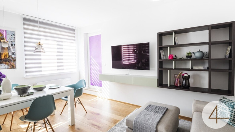 The apartment was designed and equipped to a high standard with the support of an interior designer. Spacious living-dining area with loggia, three rooms, separate bathroom and toilet, large cellar compartment and garage space.