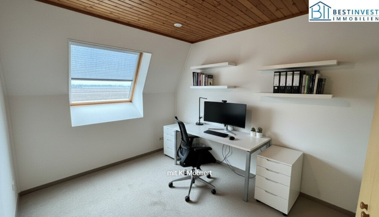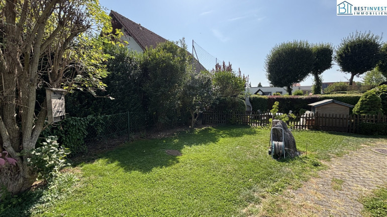 Das elegante Zuhause erstreckt sich über zwei Etagen und bietet einen sonnigen Südbalkon, der zum Entspannen einlädt. Zur Wohnung gehört ein kleiner Gartenanteil, nicht groß doch ideal zur Erholung im Freien.