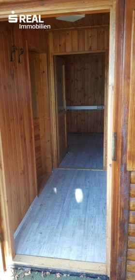 Direkt angrenzend befindet sich eine separate Holzkonstruktion mit Terrasse, die ehemals als Hundefriseursalon genutzt wurde und weiteres Potenzial für individuelle Nutzungsideen bietet.