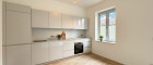 Jede Wohnung wird mit einer neuen, modernen Küche ausgestattet. Die derzeit gezeigten Bilder sind Visualisierungen und KI-generiert.