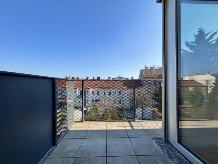 Die Freiflächen sind teilweise in den Innenhof gerichtet und teilweise zur Straßenseite, mit direkten Blick auf den Kahlenberg. Sie bieten geschützte, ruhige Rückzugsorte und schaffen private Wohlfühloasen zum Entspannen, Abschalten und Genießen.
