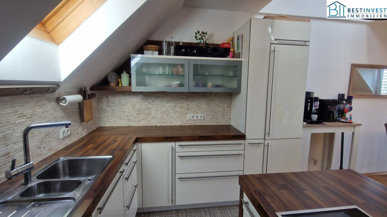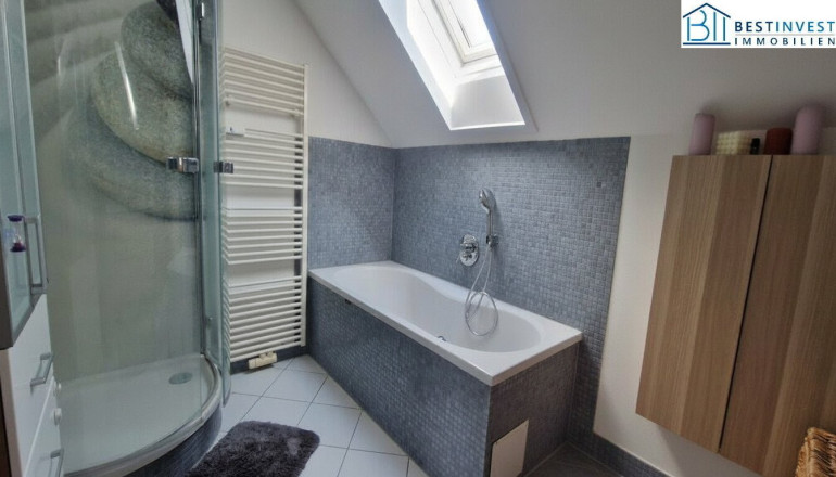 Die Einbauküche ist funktionell und modern gestaltet, ideal für genussvolle Kochmomente. Eine große Oberlichte erhellt den ganzen Wohnbereich und schafft eine stilvolle Atmosphäre. Das Badezimmer mit Fenster ist ein echtes Highlight: Hier erwarten Sie sowohl eine Badewanne als auch eine Dusche – Wellness und Entspannung sind hier garantiert.
