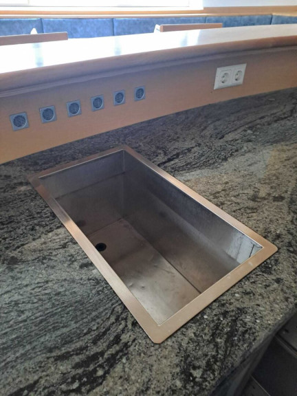 Die Küche ist vollständig ausgestattet und ermöglicht einen sofortigen gastronomischen Betrieb.