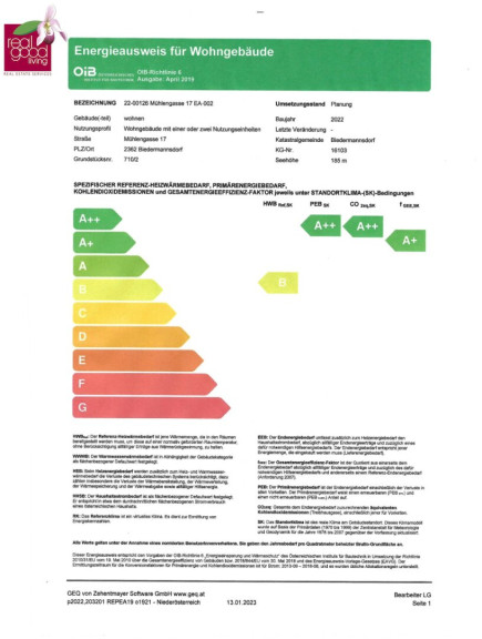 | Heizwärmebedarf: | B 35,00 kWh/m²a |