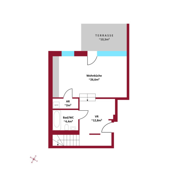 - Bad mit Badewanne und WC: ca. 4,35 m²