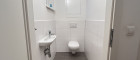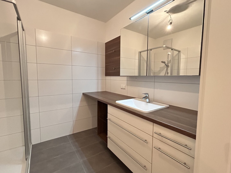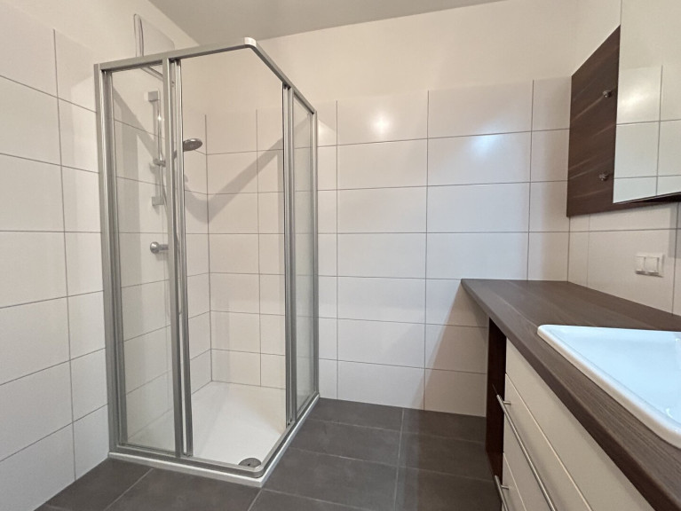 Badezimmer mit Dusche und Waschmaschinenanschluss