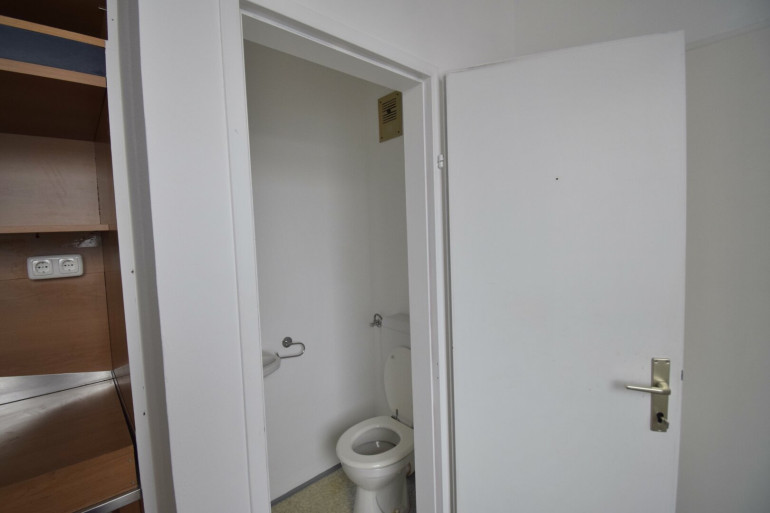 Eine Toilette sowie eine kleine Teeküche sind in der Einheit integriert und sorgen für praktischen Komfort im Büroalltag.