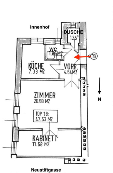 Diese entzückende 2-Zimmer-Wohnung befindet sich im 3. Liftstock in einem Altbauhaus in der Neustiftgasse im 7. Bezirk.