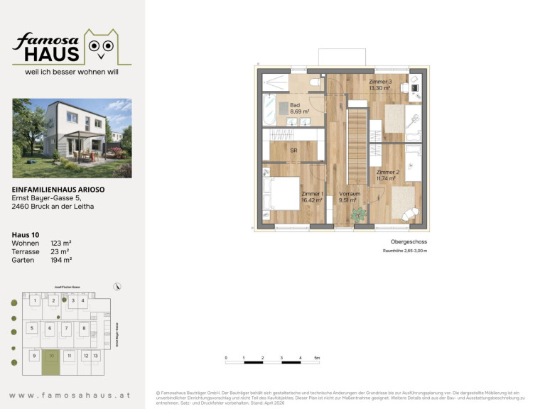 In Bruck an der Leitha (Ernst Bayer-Gasse 5) bieten 13 Einfamilien- und Doppelhäuser, Raum für alle, die das Leben gern nach draußen erweitern: Frühstück auf der Terrasse, Spielen im Eigengarten, Ankommen in einem Zuhause, das sich leicht anfühlt. Ziegelmassiv und als Niedrigenergiehaus geplant, belagsfertig übergeben und bereit für den nächsten Lebensabschnitt – mit durchdachten Details, die Komfort spürbar und Kosten kalkulierbar machen. Nur noch wenige Einheiten verfügbar!