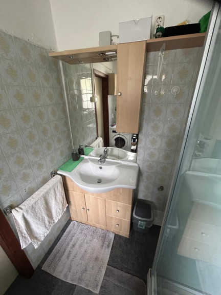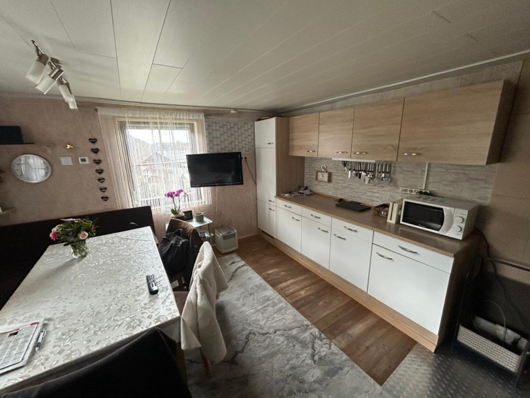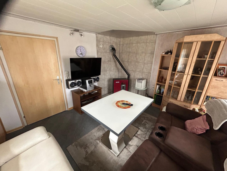 Das gepflegte Haus besticht durch seine durchdachte Raumaufteilung und eine behagliche Atmosphäre. Der großzügige Wohnbereich mit Laminatboden und einem gemütlichen Kamin lädt zu entspannten Stunden ein, während die moderne Einbauküche alle Kochwünsche erfüllt. Das Badezimmer ist mit einer praktischen Dusche ausgestattet und verfügt zudem über ein Fenster, das für angenehmes Tageslicht sorgt.