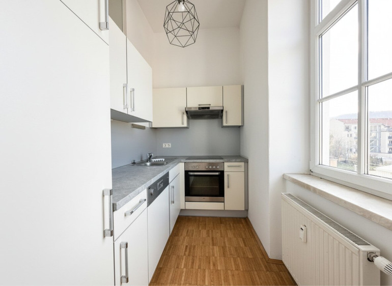 Die Wohnküche bildet das Herzstück der Wohnung. Hier können Sie nicht nur bequem kochen, sondern auch entspannte Abende verbringen. Die moderne Einbauküche ist mit hochwertigen Geräten ausgestattet und erfüllt alle Anforderungen an zeitgemäßes Wohnen.