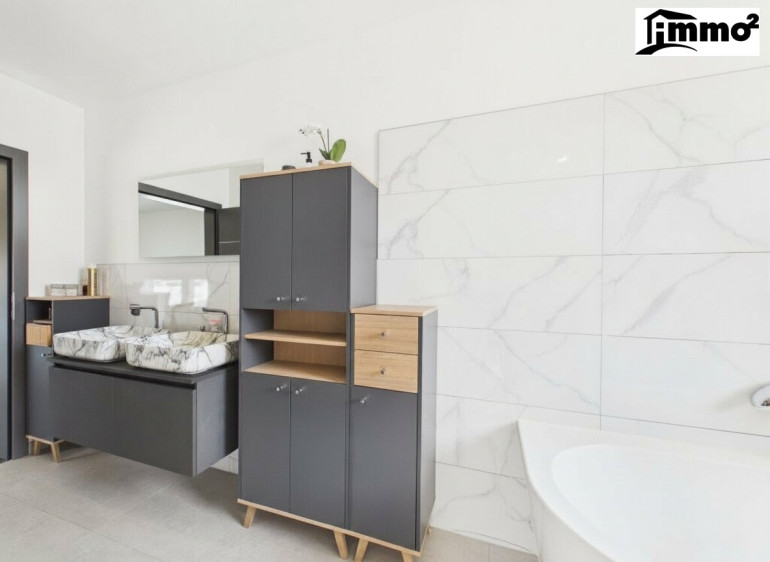 Ein weiteres Highlight ist die großzügige Terrasse, die direkt an den Wohnbereich anschließt. Sie erweitert den Wohnraum nach außen und bietet einen schönen Platz für entspannte Stunden im Freien.