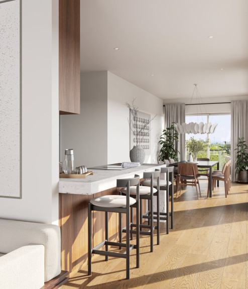 Der offen gestaltete Wohn- und Essbereich bildet das Herzstück der Wohnung und überzeugt durch seine klare Struktur sowie den direkten Zugang zum Balkon. Große Fensterflächen sorgen für eine helle, freundliche Atmosphäre und unterstreichen das luftige Raumgefühl.