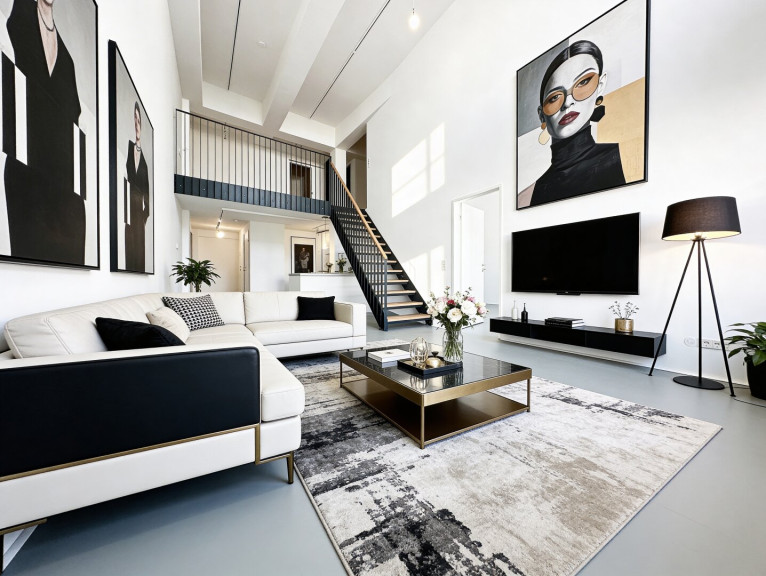 Die exklusive Erstbezugswohnung beeindruckt durch ihre außergewöhnliche Loft-Architektur mit einer Raumhöhe von ca. 4,90 Metern – ein seltenes Merkmal, das ein unvergleichlich großzügiges und offenes Wohngefühl schafft. Die lichtdurchfluteten Räume entfalten durch die hohen Decken und die elegante Galerie eine besondere Atmosphäre, die sowohl modern als auch inspirierend wirkt.