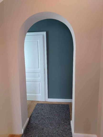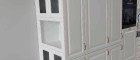 - Maßgefertigte Einbauschränke (matt weiß, grifflos) im Arbeitszimmer und Durchgang