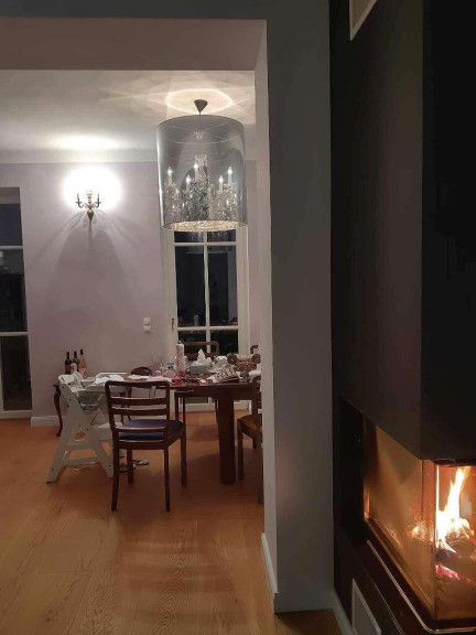 - Offener, lichtdurchfluteter Wohnbereich mit Kamin und moderner Küche (insgesamt ca. 60 m2) –