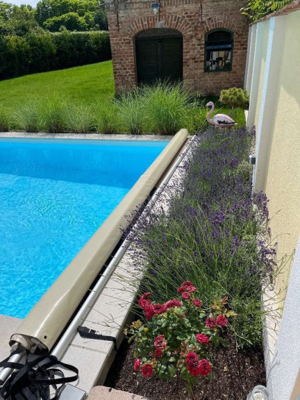 - Beheizbarer Pool mit rund 35 m2 Terrasse davor – Natursteine von Leier (passend zum Weinkeller)