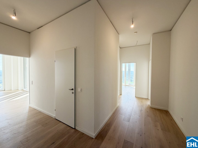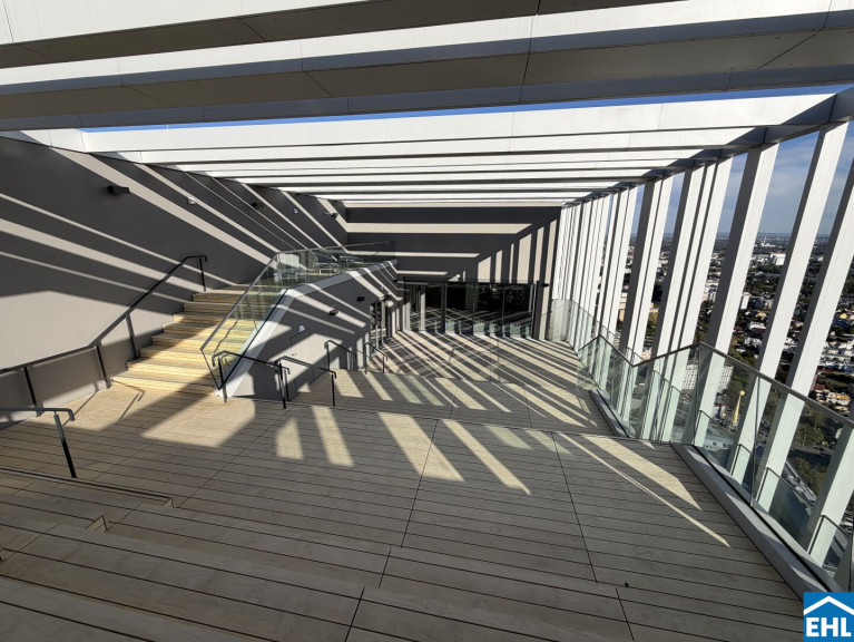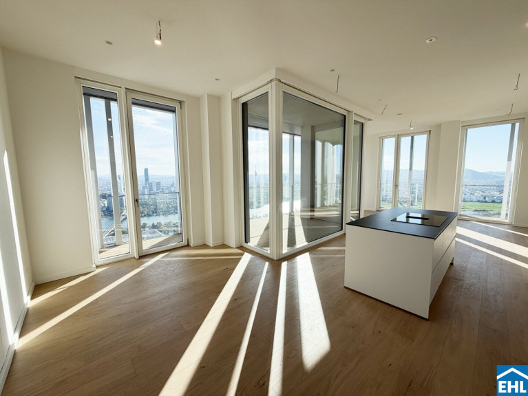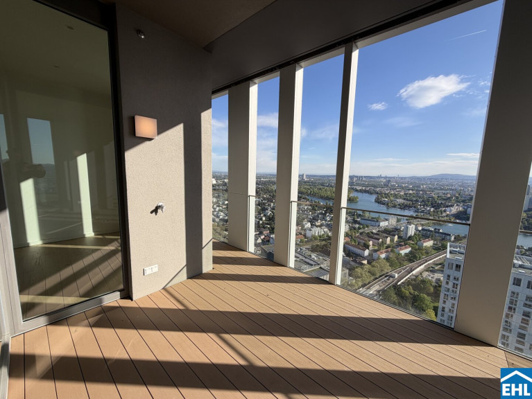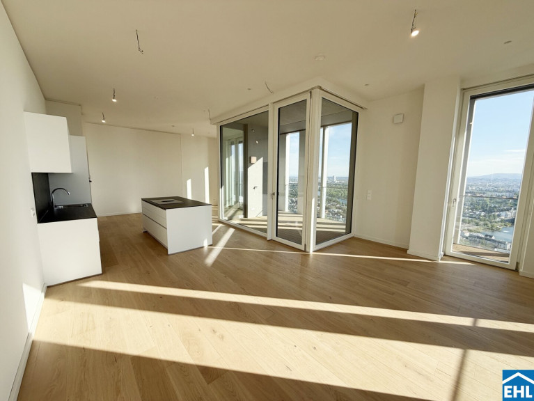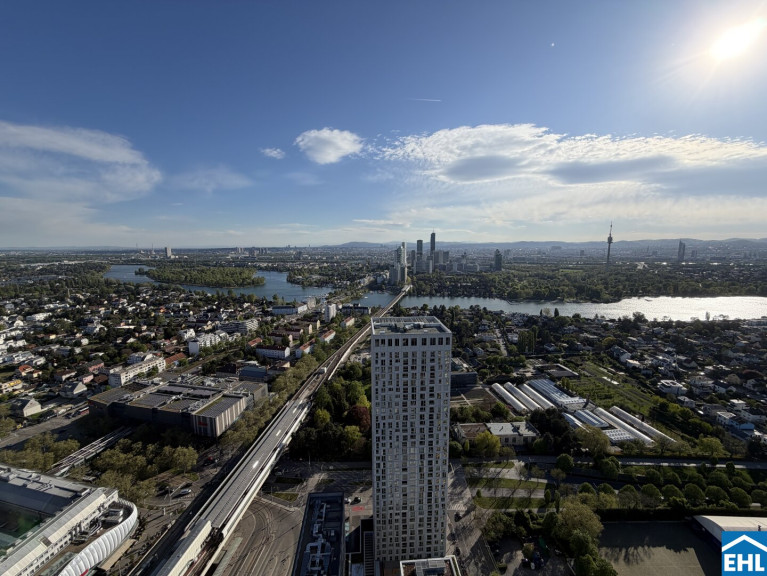 In einzigartiger Lage, direkt bei der U1-Station Kagran und vis-à-vis vom Donau Zentrum, entsteht ein exklusiver, ca. 155m hoher Wohnturm mit 45 Etagen. Die insgesamt 347 Mietwohnungen bieten einen vielfältigen Wohnungsmix: von smart geschnittenen 1,5-Zimmer-Apartments ab ca. 38 m² über komfortable 2-Zimmer-Wohnungen bis hin zu großzügigen 3- und 4-Zimmerwohnungen mit bis zu ca. 80 m².