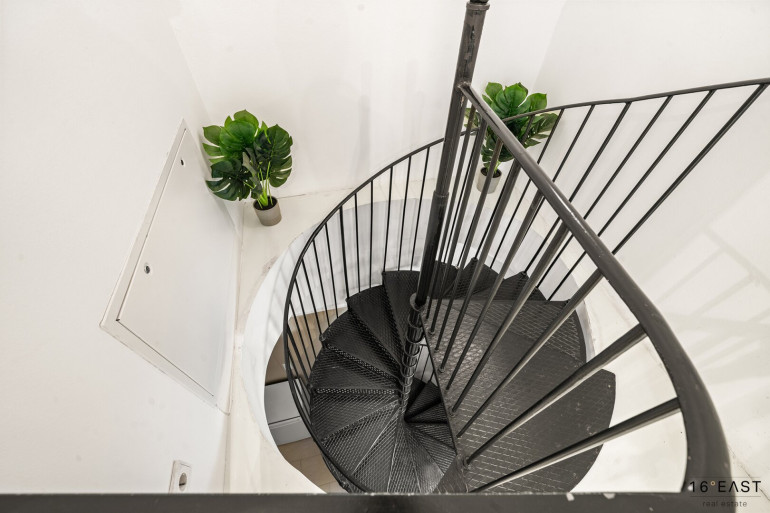Die beiden Ebenen sind über eine liebevoll renovierte historische Stiege miteinander verbunden.