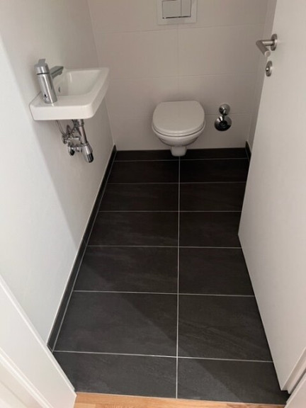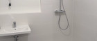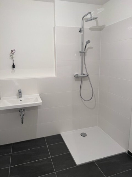 Bad mit Dusche - Duschwand ist montiert - Waschbecken und Waschmaschinenanschluß, WC extra