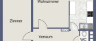 2 Zimmer-Mietwohnung mit großzügiger Küche und Loggia.