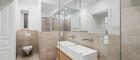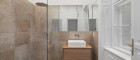 Der Mittelpunkt der Wohnung ist die weitläufige Wohnküche mit hochwertiger Tischlerküche, Kochinsel und Stein-Arbeitsfläche – ein Raum, der sowohl repräsentativ als auch alltagstauglich ist. Zwei Schlafzimmer verfügen jeweils über ein Bad en suite, ergänzt durch ein separates Gäste-WC. Ein großzügiger Abstell- bzw. Technikraum sorgt für Ordnung und Funktionalität.