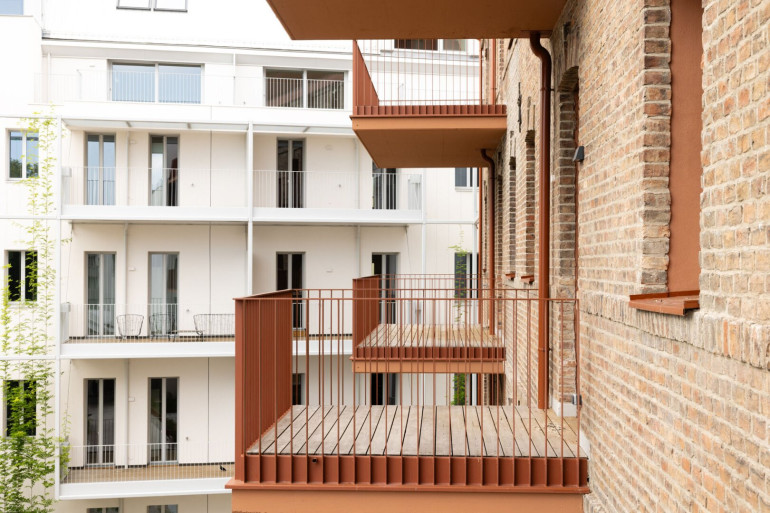 Die Liegenschaft gliedert sich in vier architektonisch unterschiedliche Gebäudetrakte: den sorgfältig revitalisierten Altbestand mit Straßentrakt und zwei Stiegen, einen charmanten Hoftrakt mit klassischer Backsteinfassade sowie einen modernen Neubautrakt im Innenhof. Diese Vielfalt schafft ein hohes Maß an Individualität und architektonischem Reiz.