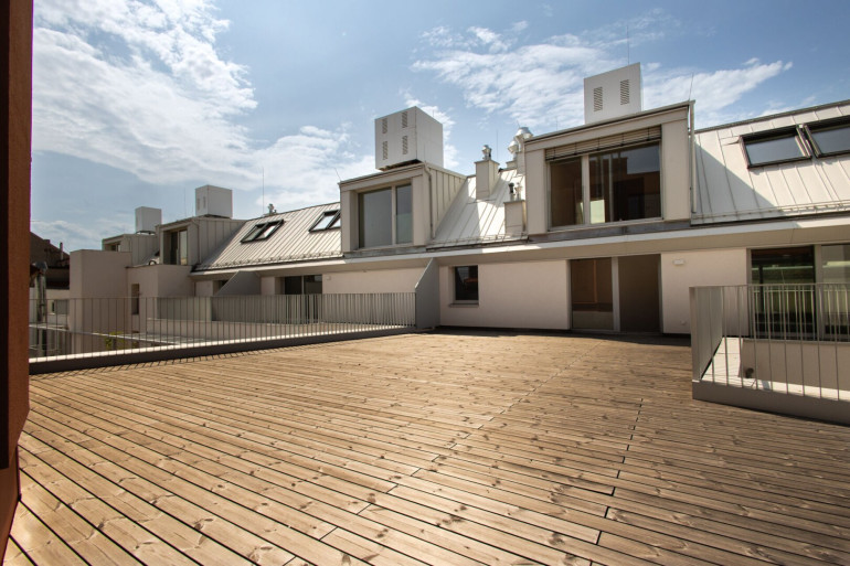 Die Liegenschaft gliedert sich in vier architektonisch unterschiedliche Gebäudetrakte: den sorgfältig revitalisierten Altbestand mit Straßentrakt und zwei Stiegen, einen charmanten Hoftrakt mit klassischer Backsteinfassade sowie einen modernen Neubautrakt im Innenhof. Diese Vielfalt schafft ein hohes Maß an Individualität und architektonischem Reiz.
