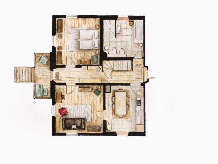 Das Haus liegt in bester Lage mit einem atemberaubenden Blick auf den glitzernden Grundlsee und die umliegenden Berge. Erbaut im typischen Ausseer Stil, verströmt es einen Hauch von Nostalgie, ohne auf modernen Komfort zu verzichten.